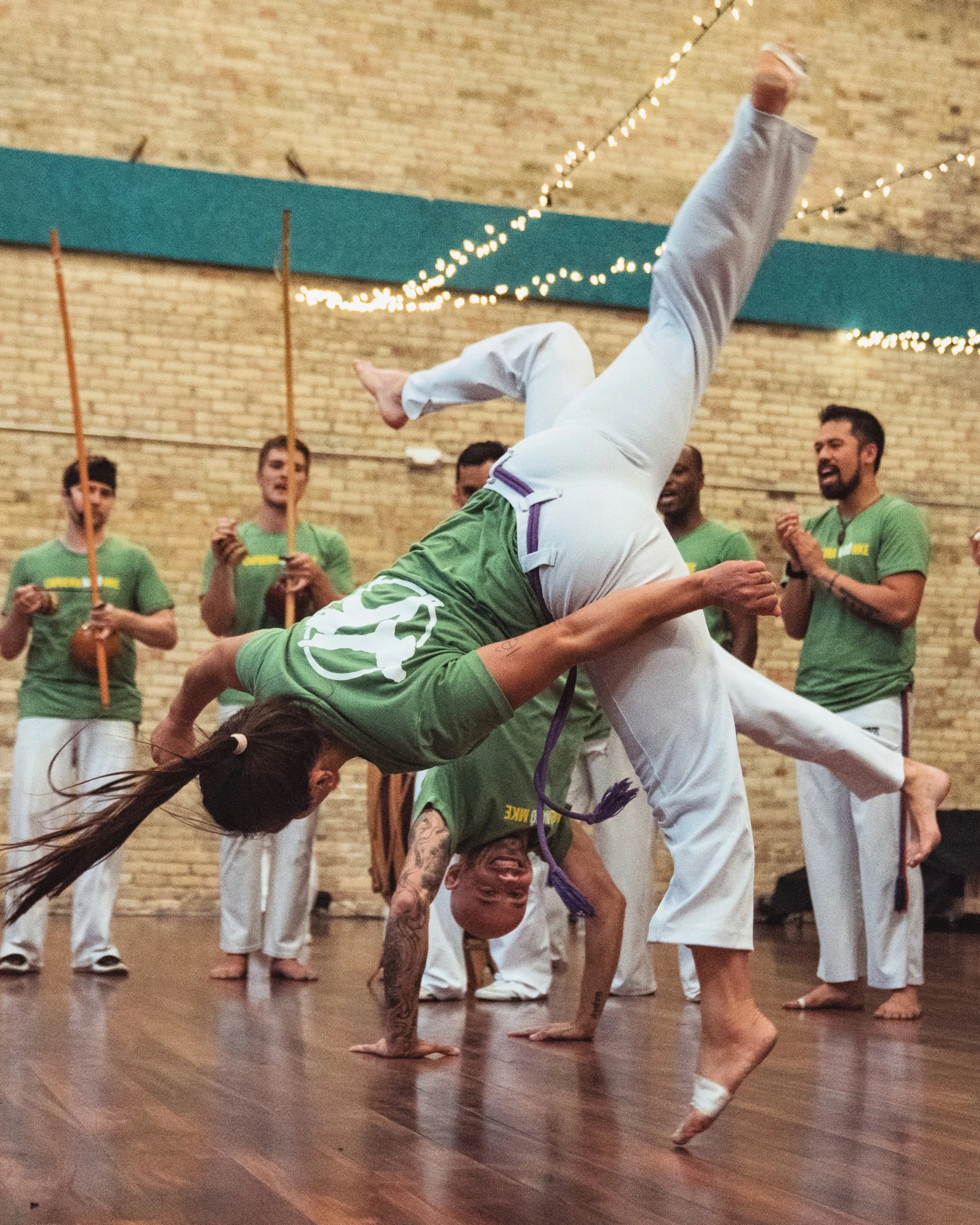 Capoeira is an Afro-Brazilian martial art that has many facets (Music, dance, arcobatics, etc.). The art form originated with enslaved Africans in Brazil, as they developed a way to train combat and a means to defend themselves, all disguised within a dance. It has deep African roots contained in much of the folklore, traditions, and music. Today, capoeira is global, and has practitioners and instructors from all cultures and walks of life.